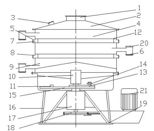 搖擺篩是利用普通電機傳動擺振體來產(chǎn)生作用,使物料在篩網(wǎng)上呈現(xiàn)漸開線的搖擺運動軌跡,達(dá)到篩分過濾的效果,設(shè)備本身的運動軌跡為橢圓型,調(diào)整擺振體上面的經(jīng)向角和切向角可改變物料在網(wǎng)面上的運動軌跡。