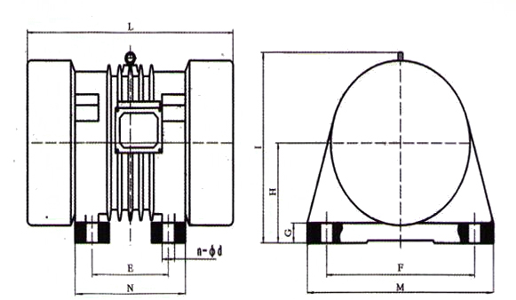 YZO系列振動(dòng)電機(jī)安裝尺寸圖: